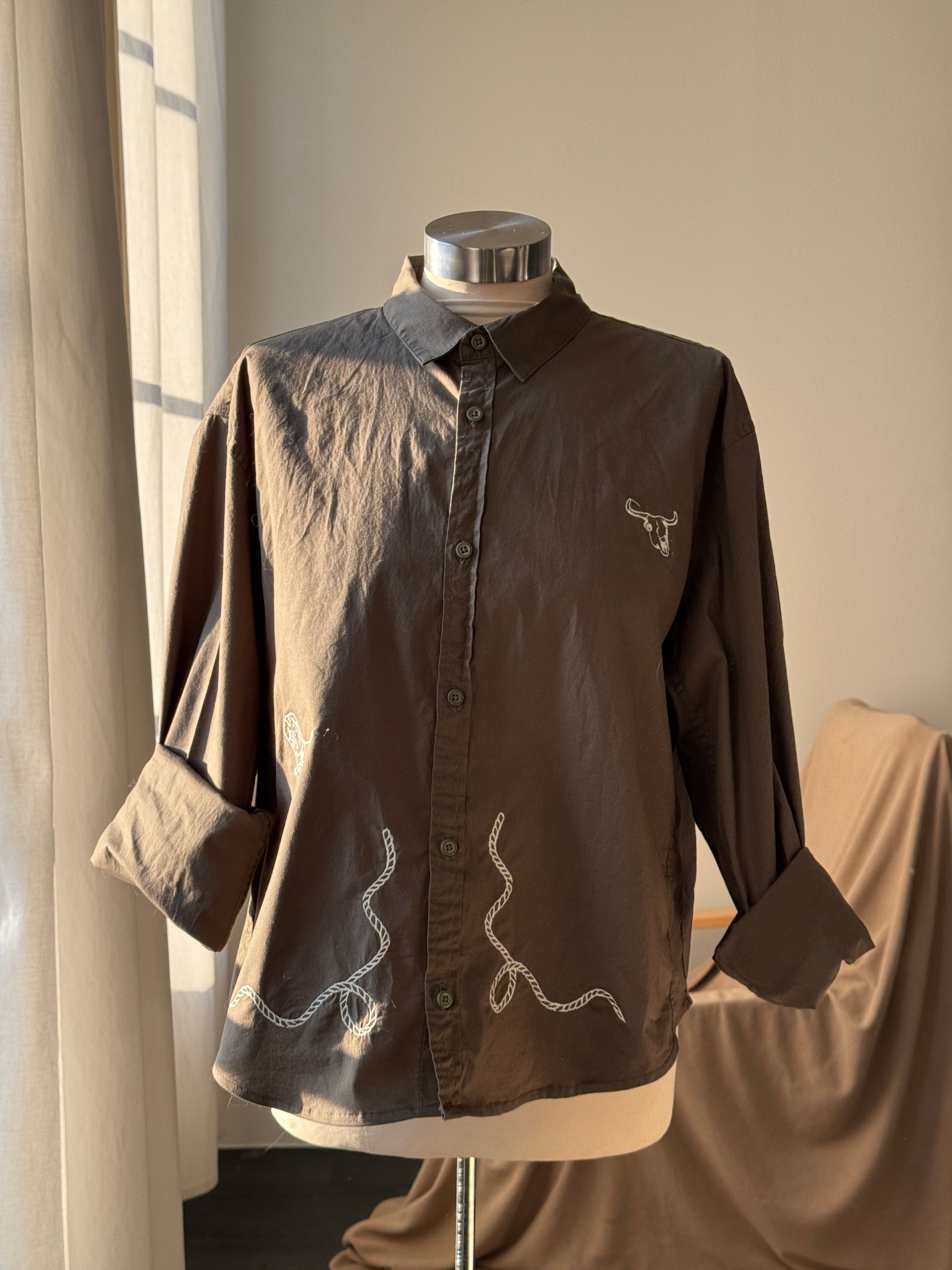 New life, one-of-a-kind shirt, original artwork through embroidery.