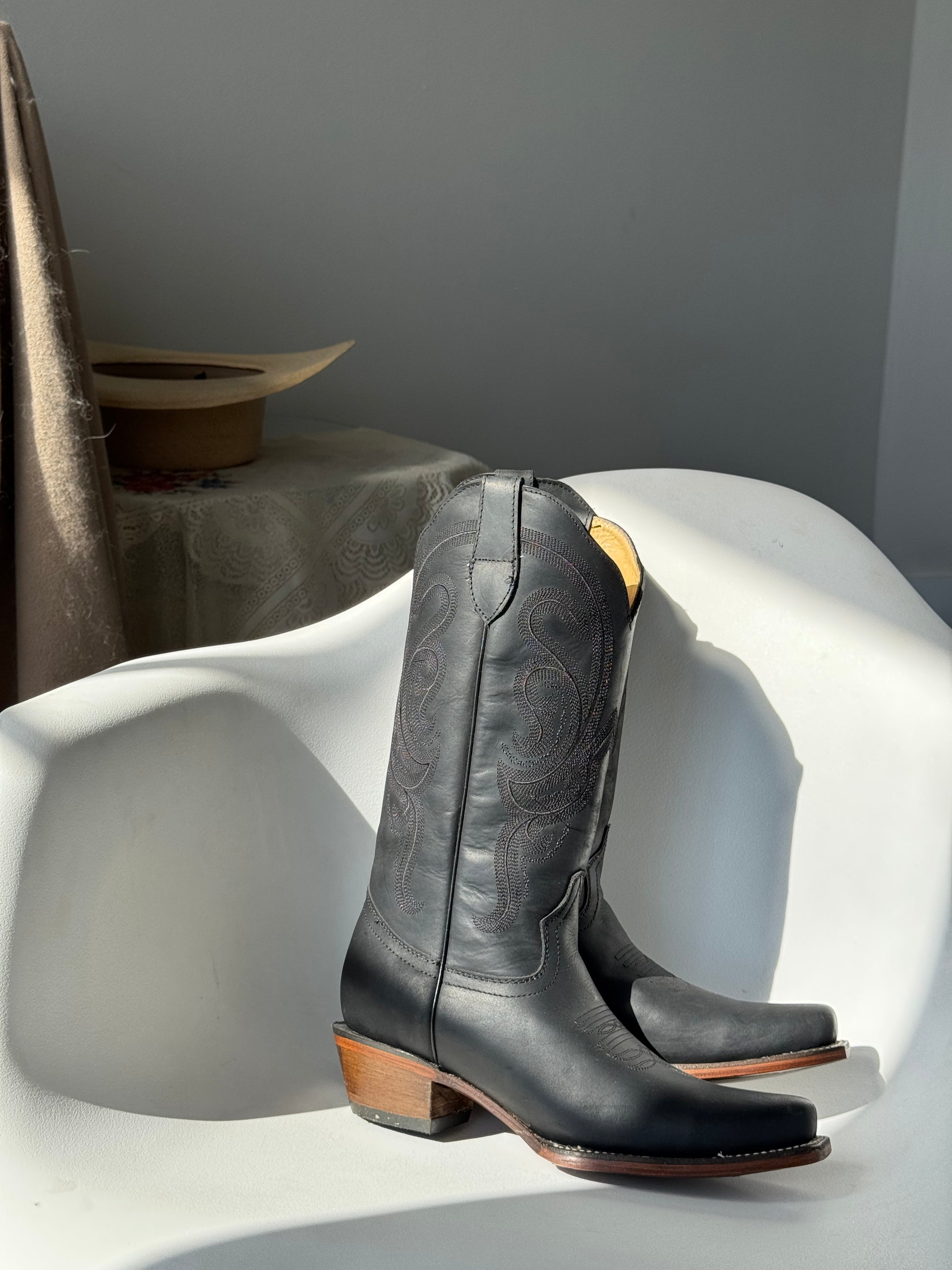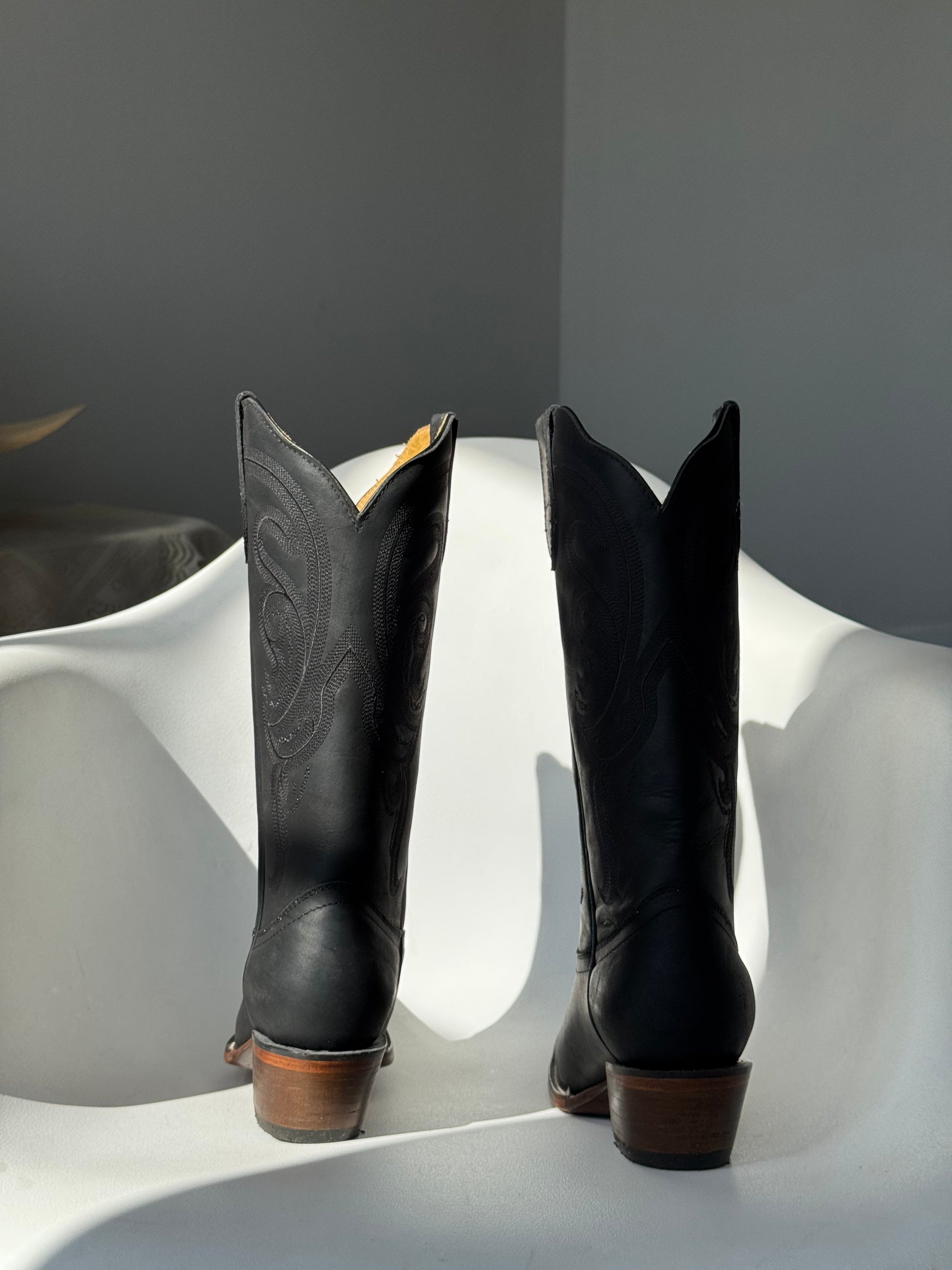 Step into timeless style with these genuine leather classic cowboy boots. Expertly crafted, these boots feature a sleek black upper contrasted by a rich brown heel, creating a striking balance of rugged elegance. The premium leather offers durability and comfort, ensuring these boots only get better with time! With traditional western stitching and a versatile silhouette, they're perfect for everything from casual wear to a night out.