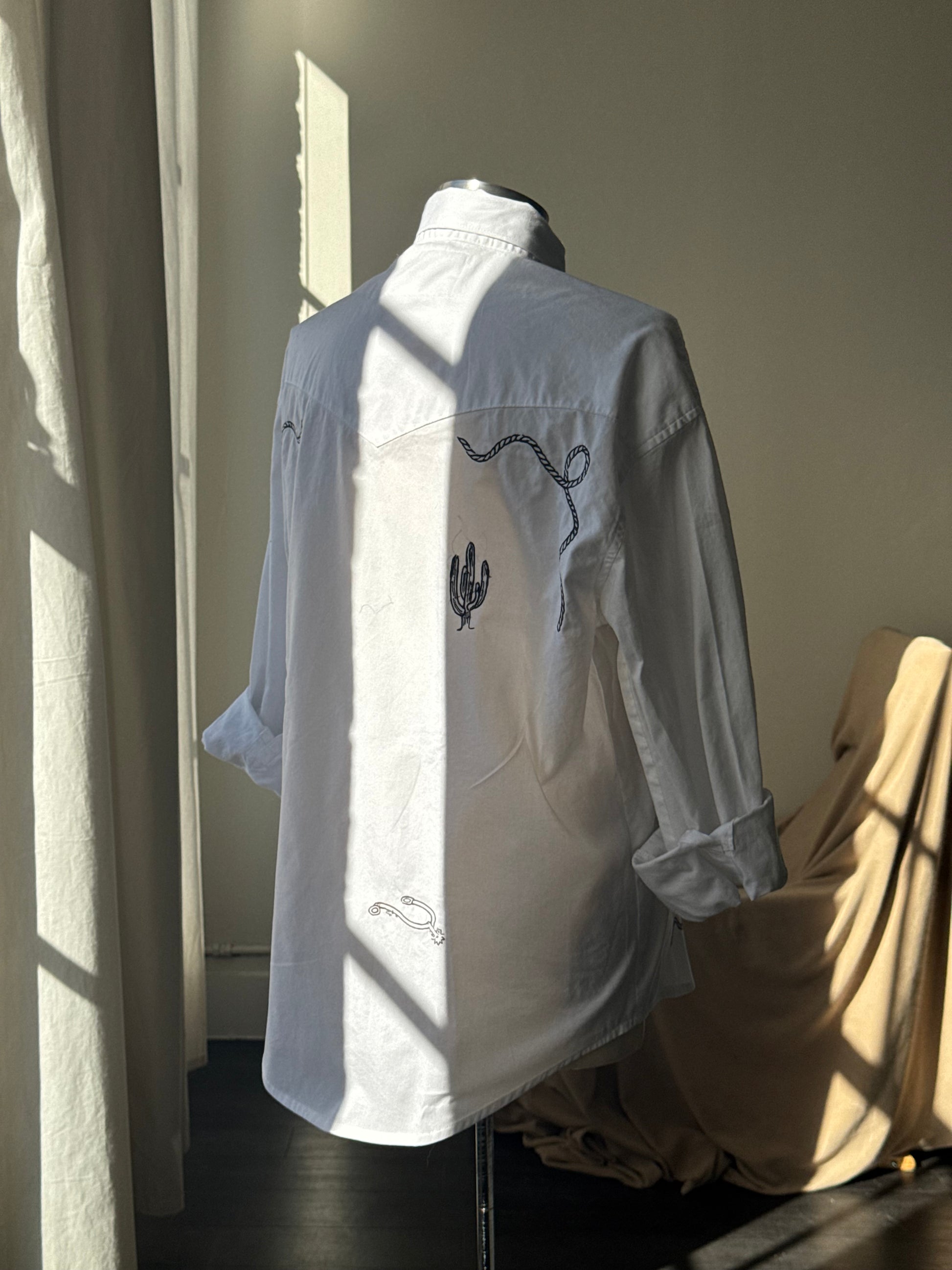 New life, one-of-a-kind shirt, original artwork through embroidered designs.